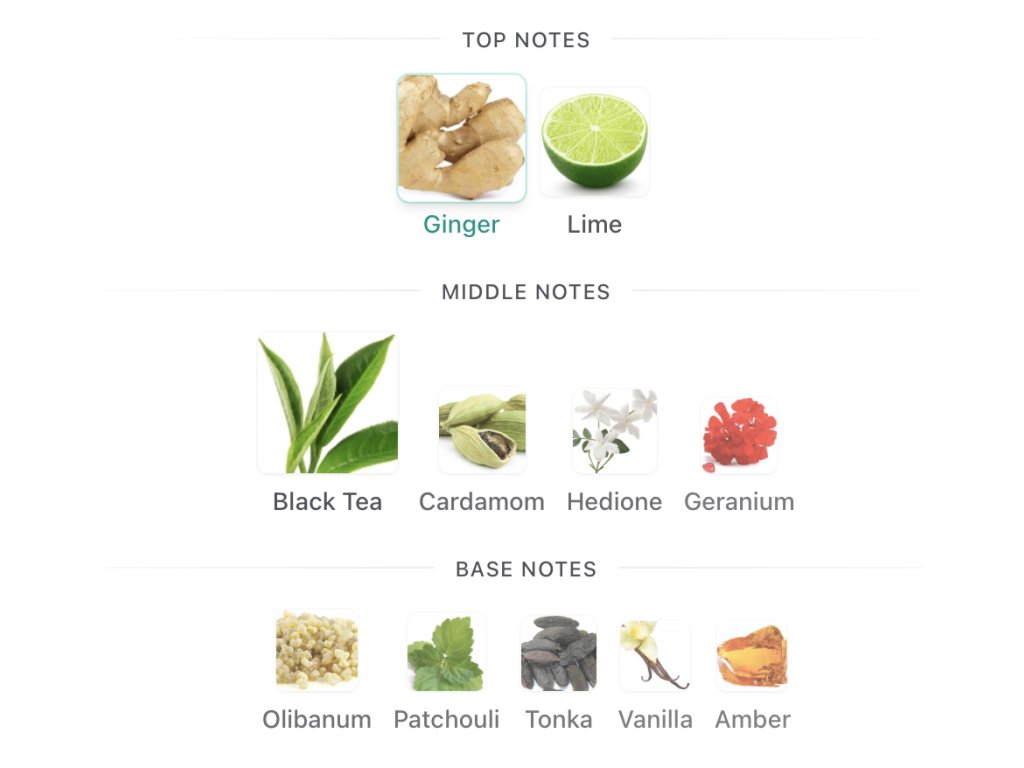 Hlava: Energický Zázvor (Ginger) a svieža Limetka (Lime).